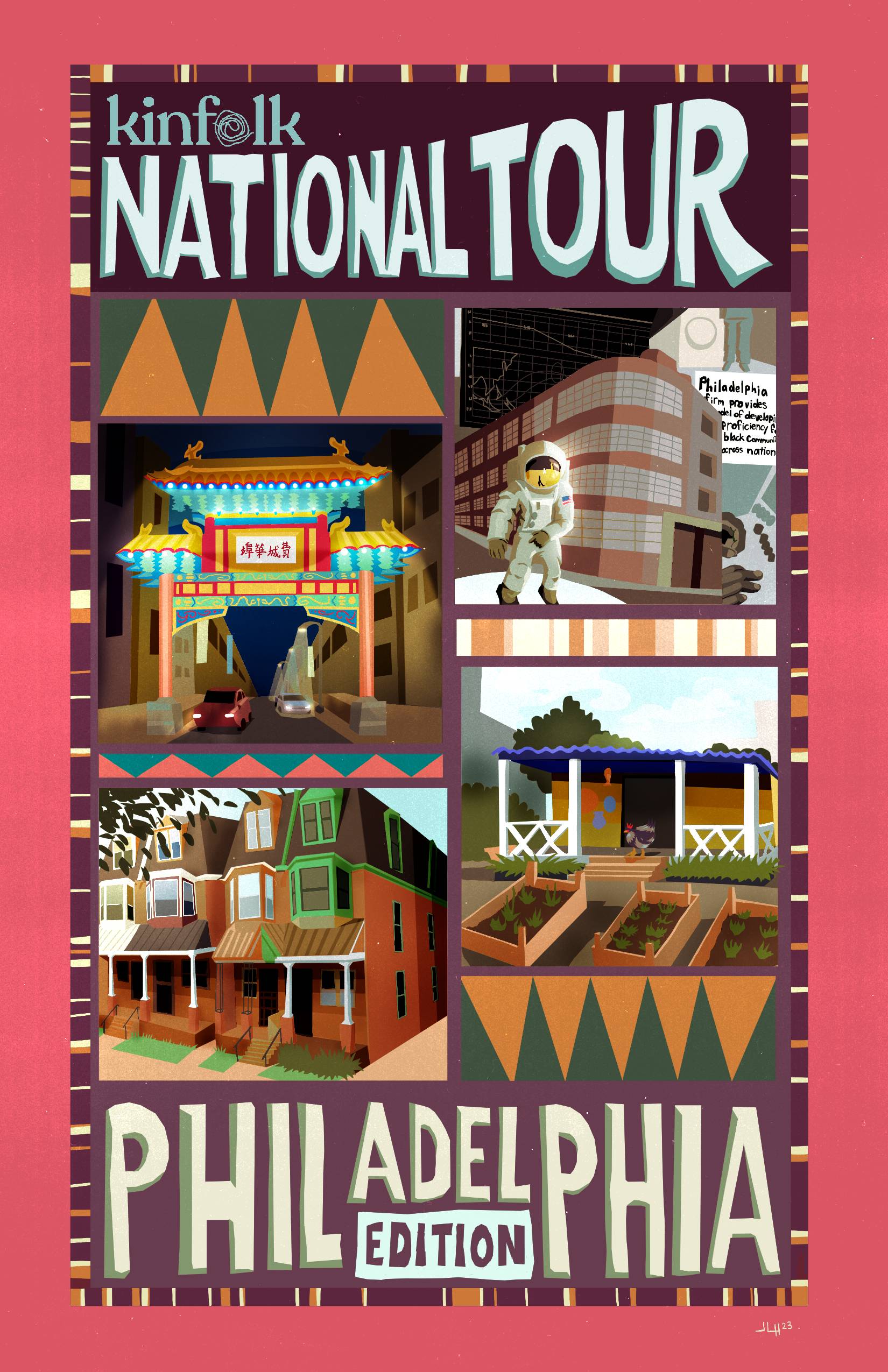 Kinfolk is an augmented reality app used to educate on Black history through engaging with 3D models of historic figures in site specific installations across the country. I started working with them in 2021, and since then I’ve made the graphic components for several of their activations, including covers and illustrations for accompanying workbooks, as well as designing some of those workbooks themselves.